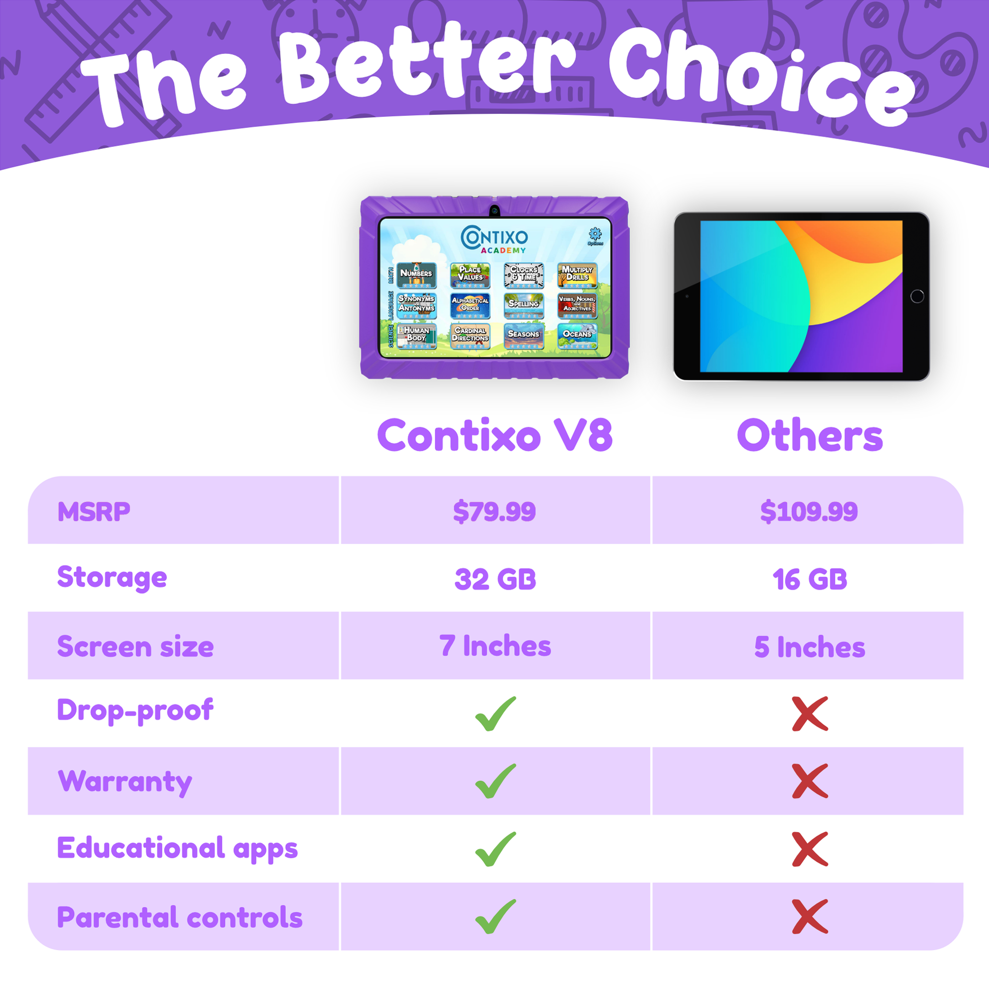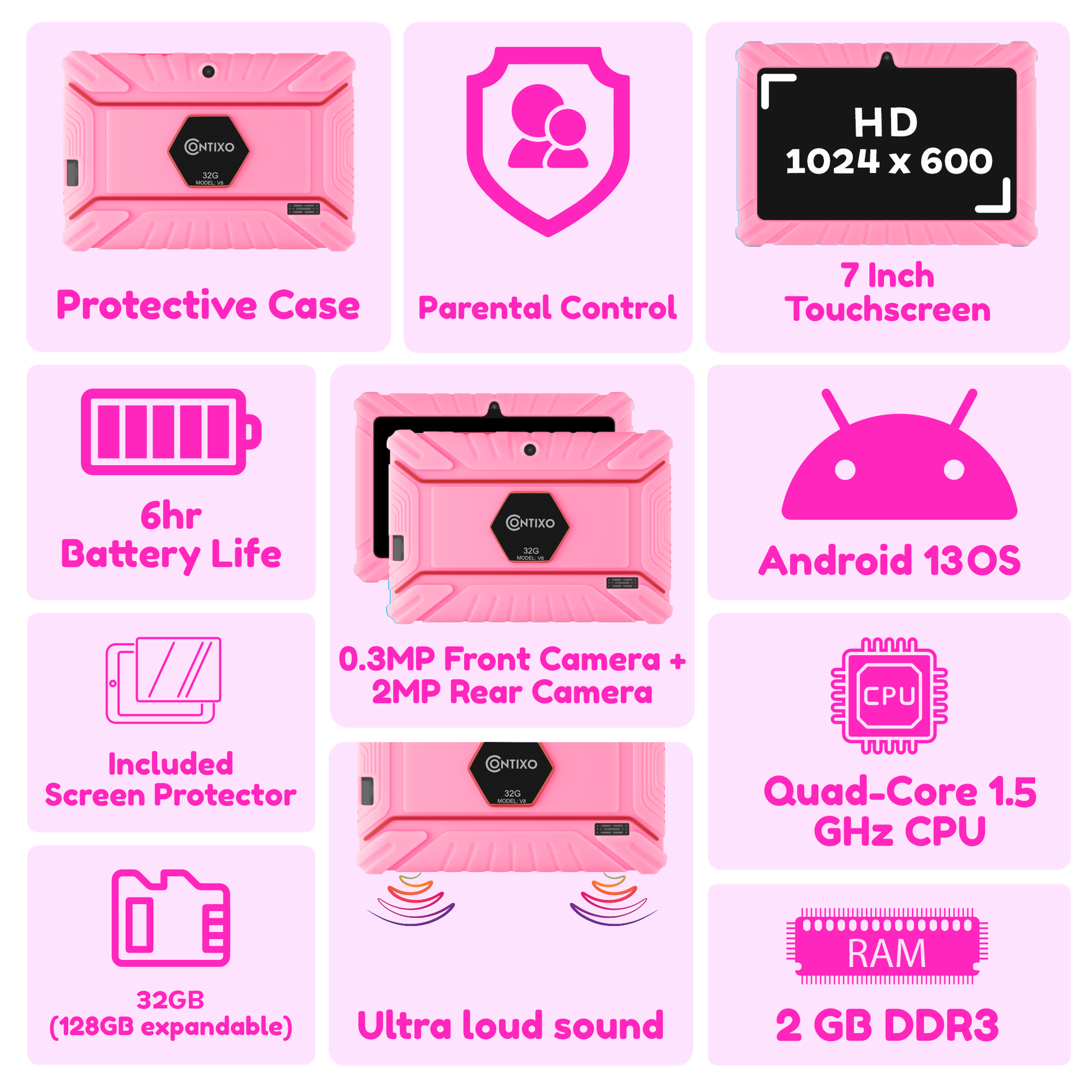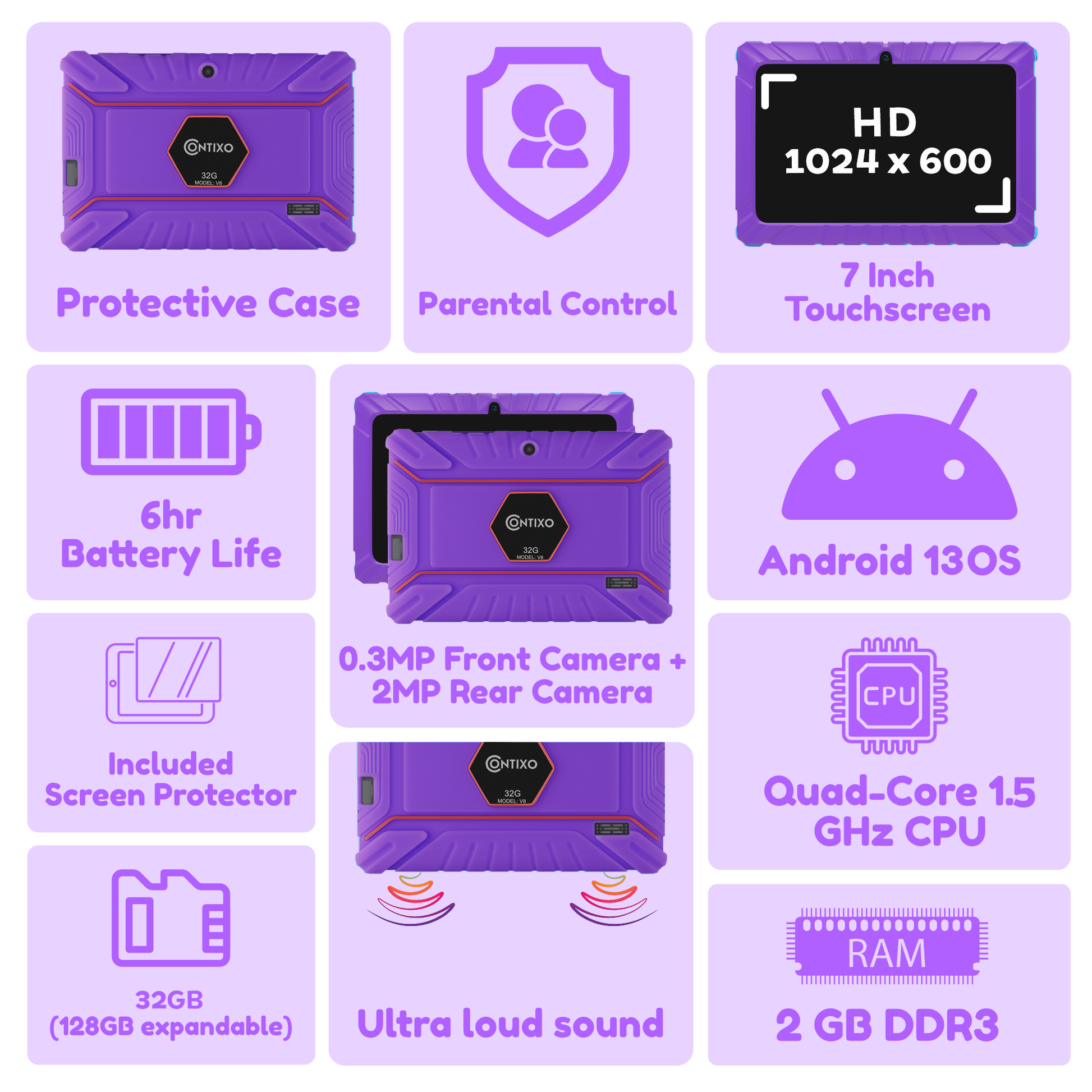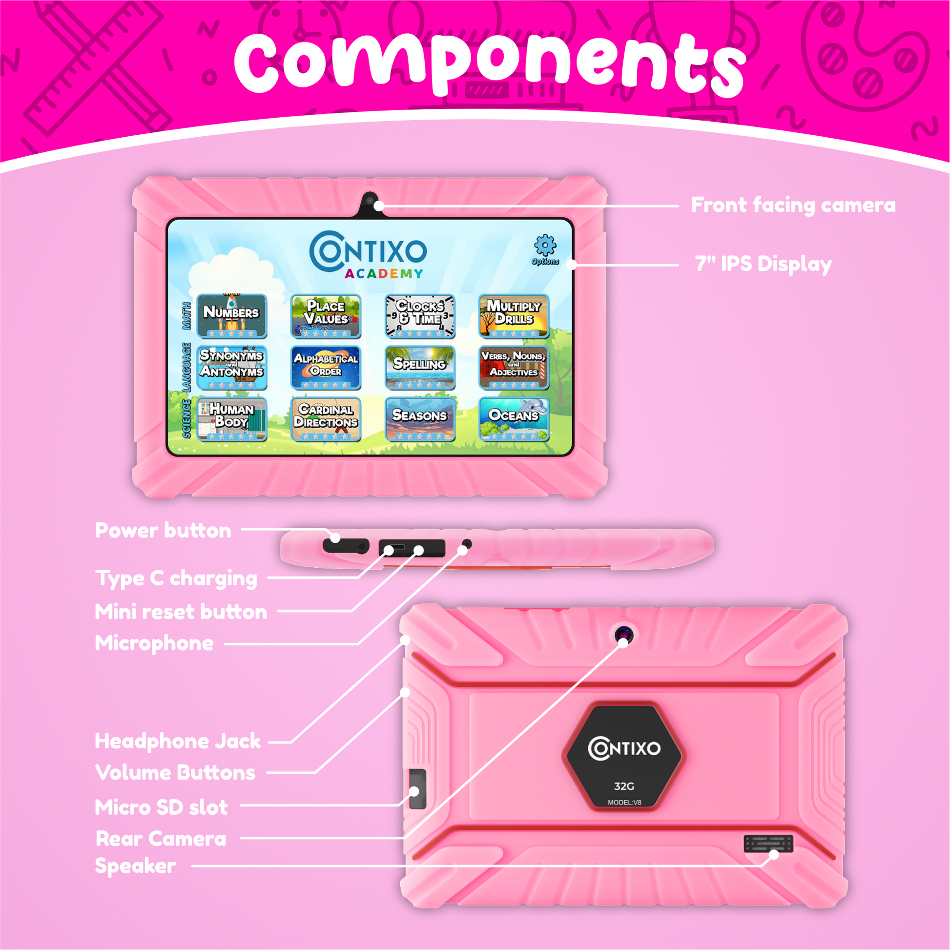 - STEM Learning with Contixo Academy:-Includes $200 worth of educational content aligned with Science, Technology, Engineering, and Math (STEM) programs, promoting interactive learning for kids.