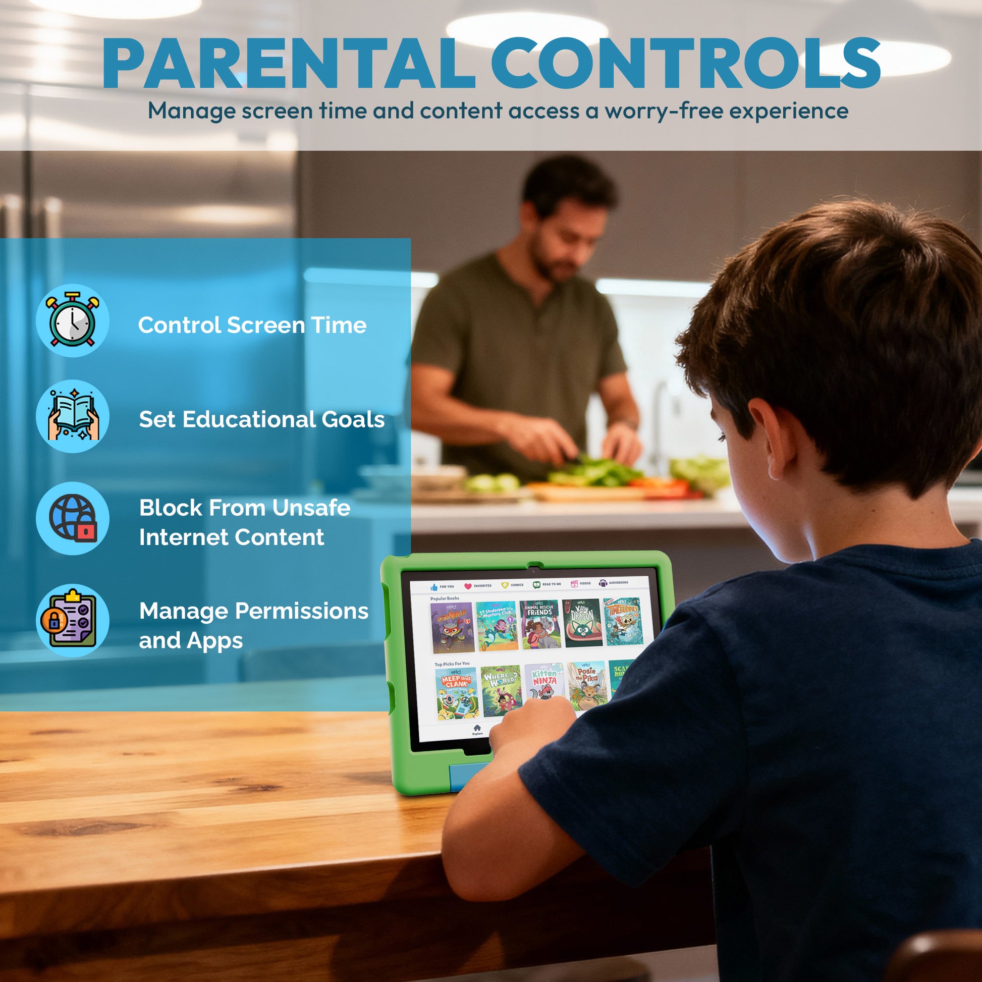 Running on the latest Android platform, the tablet offers responsive performance, enhanced security, and a clean, intuitive interface. Built-in parental controls make it easy to manage screen time, apps, and content access, helping kids explore confidently within boundaries parents can trust.