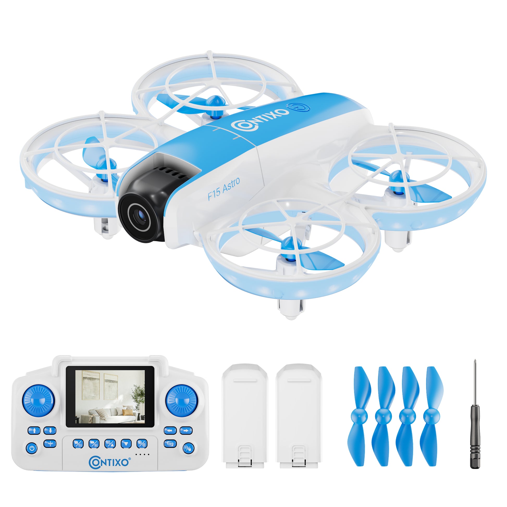 Contixo F15 Astro Mini Drone with 2.4" Screen Remote – 720P HD Camera, Live Video Display, Optical Flow Hover, One-Key Takeoff/Landing, 360° Stunts, 2 Batteries, Beginner Drone for Kids & Adults