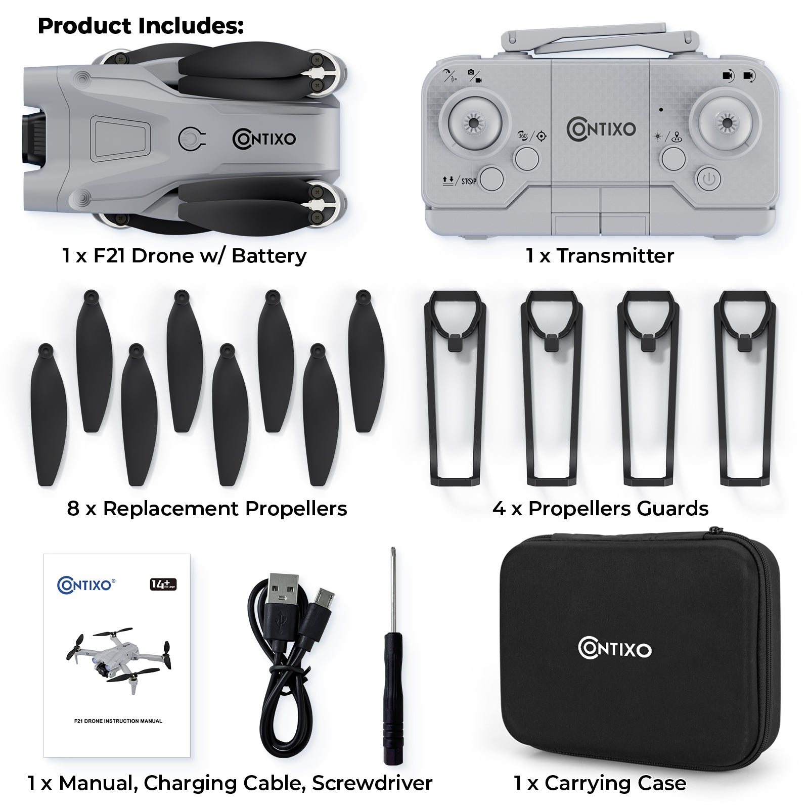 | 1 x F21 Drone w/ Battery | Contixo F21- in App Store & Google Play Store |