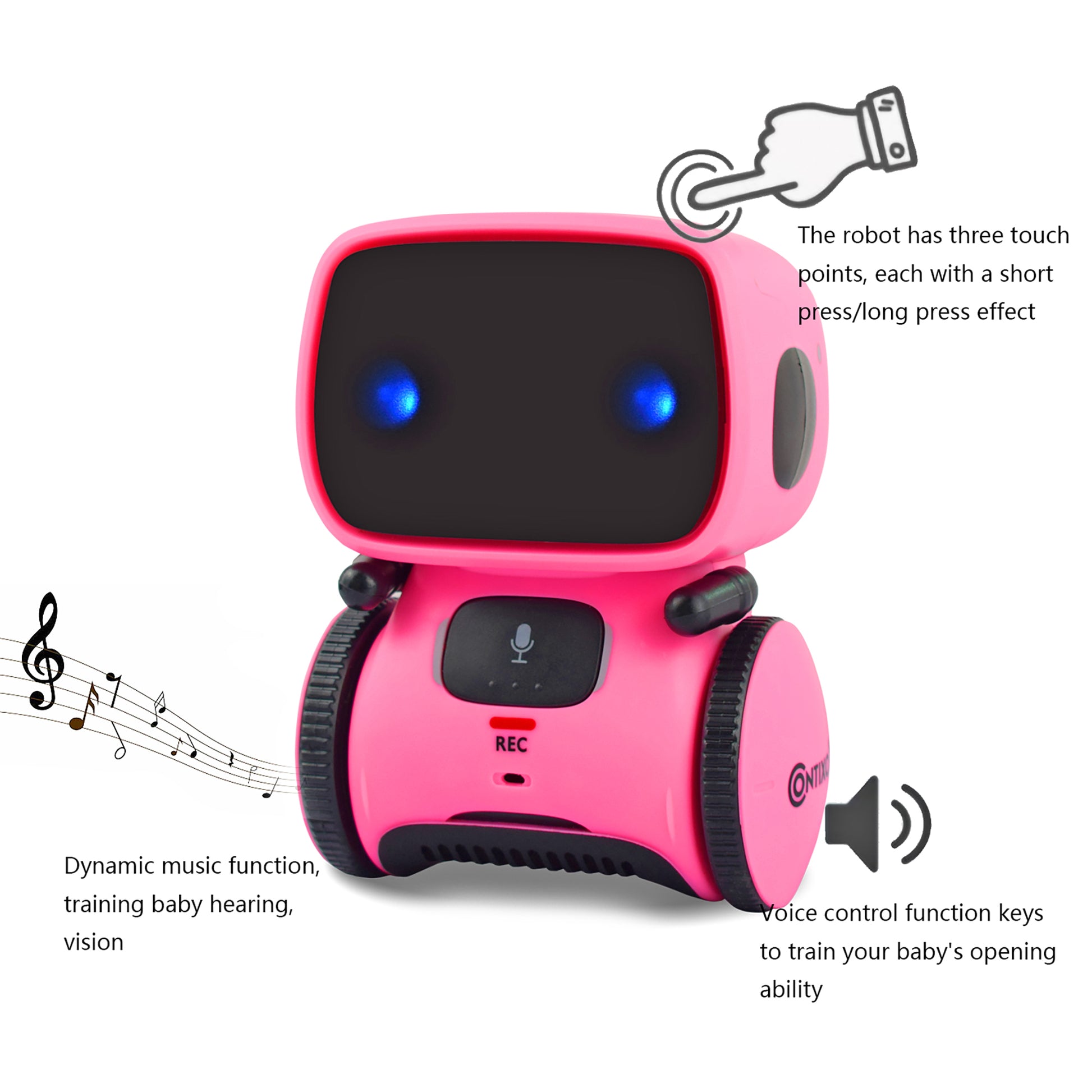 - Simply Magical to Use - Voice Control & Touch Induction at Your Service! Watch in awe as this cute Robot toy responds to touch with graceful turns, delightful forward and backward walks. Want more? The Voice Recording Feature lets you record your voice or your child's, making every replay a special moment to cherish!