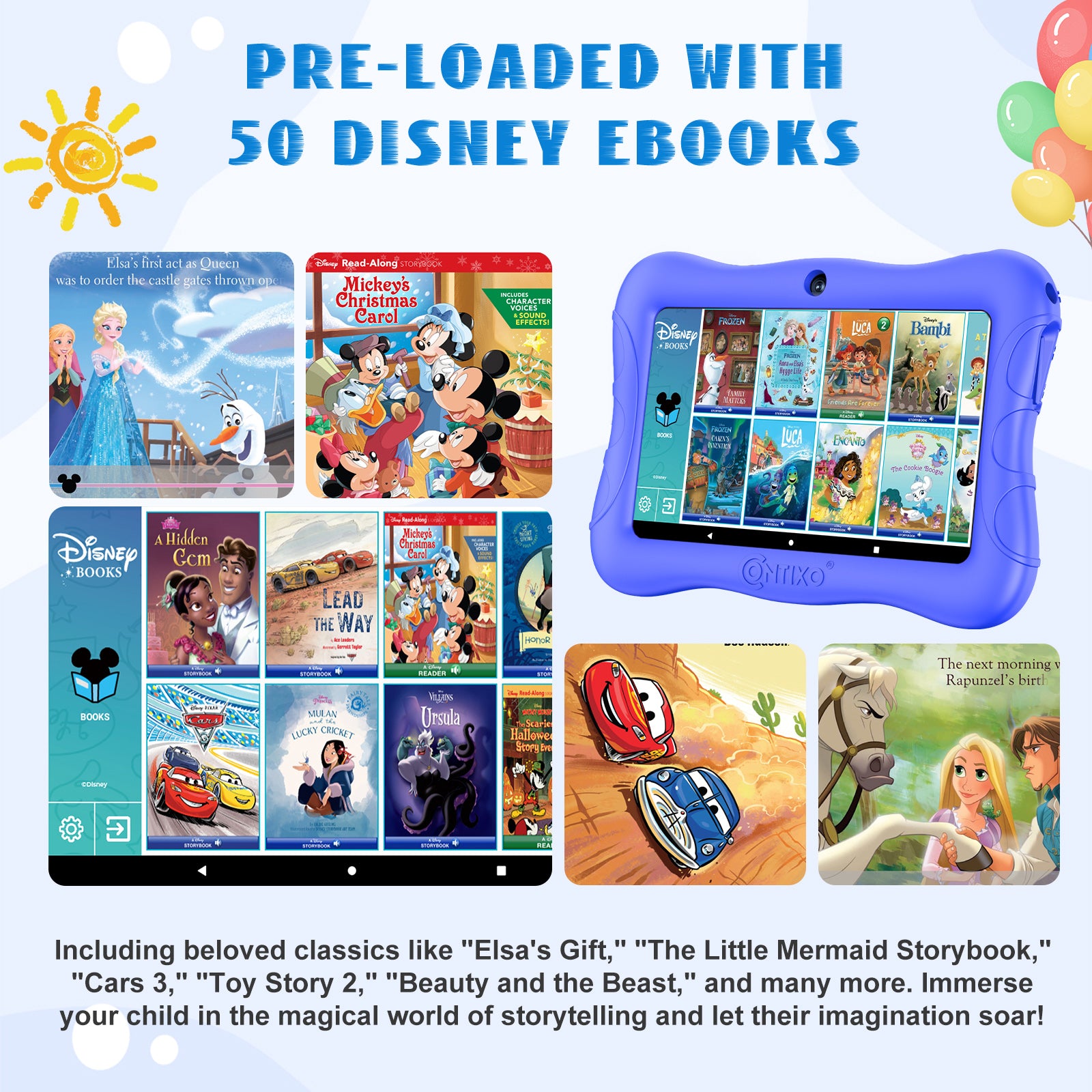 Contixo V9 Kids HD 7" Tablet - 50 Disney eBooks & Kickstand Included