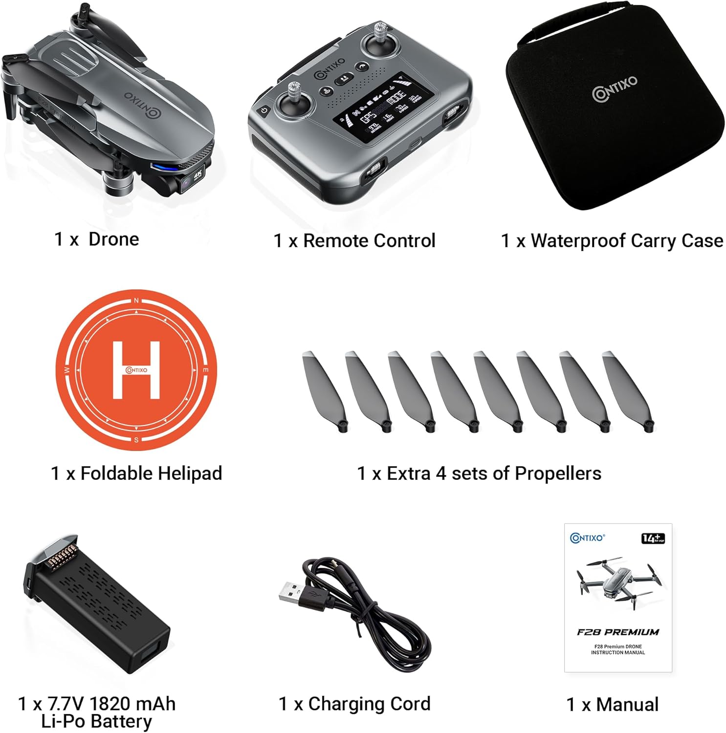 • 4K UHD CAMERA WITH WIDE-ANGLE LENS: The Contixo 4K gimbal camera mini drone has capture stunning, high-definition footage with the Contixo F28 Premium drone-s 4K UHD camera, featuring a resolution of 3840 x 2160 pixels. The built-in 110- wide-angle lens ensures a broader view, perfect for capturing sweeping landscapes or dynamic action shots. The lens also features a 70- adjustable angle, allowing you to fine-tune your shot and achieve the perfect composition every time."a-spacing-mini">2-AXIS GIMBAL WITH EIS ANTI-SHAKE: You can experience ultra-smooth and stable video recordings thanks to the 2-axis gimbal drones with Electronic Image Stabilization (EIS) on the Contixo F28 Premium. This sophisticated stabilization system effectively minimizes vibrations and shakes, ensuring that your footage remains clear and steady, even in challenging flying conditions or during high-speed maneuvers.